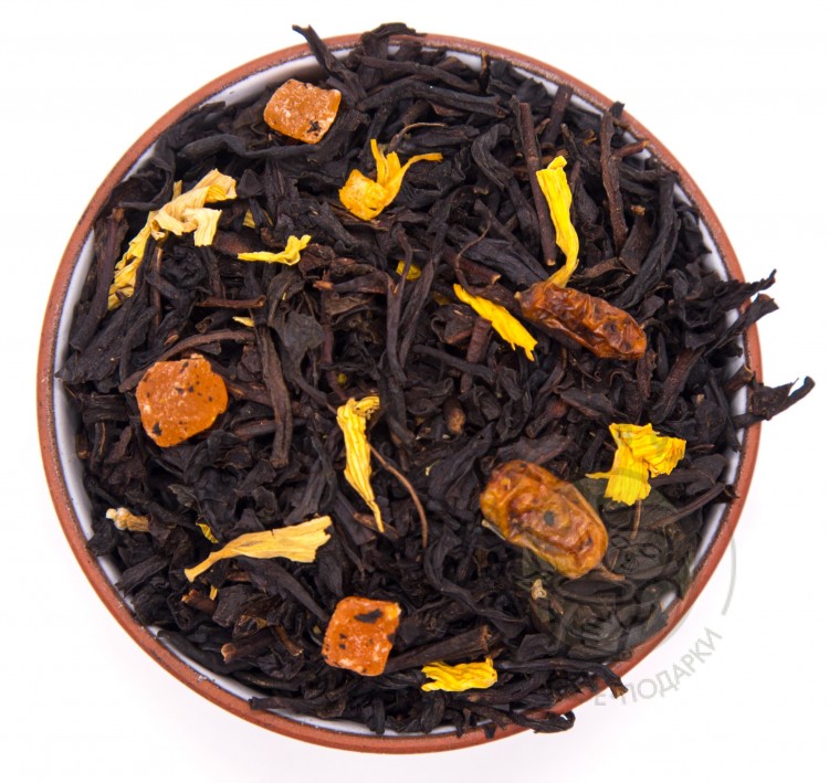 Чай черный индийский Цейлон, ягоды облепихи, календула лепестки, ежевика лист, пищевой ароматизатор